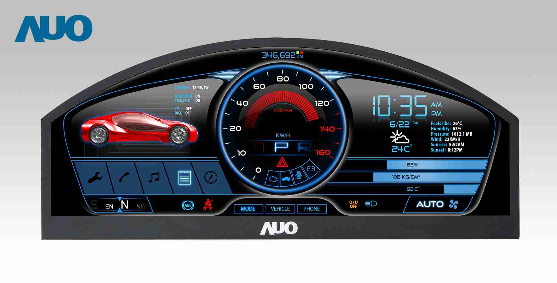 EBpay 12.3吋超高解析异型切割车用面板,,,,拥有流线外观及精细画质