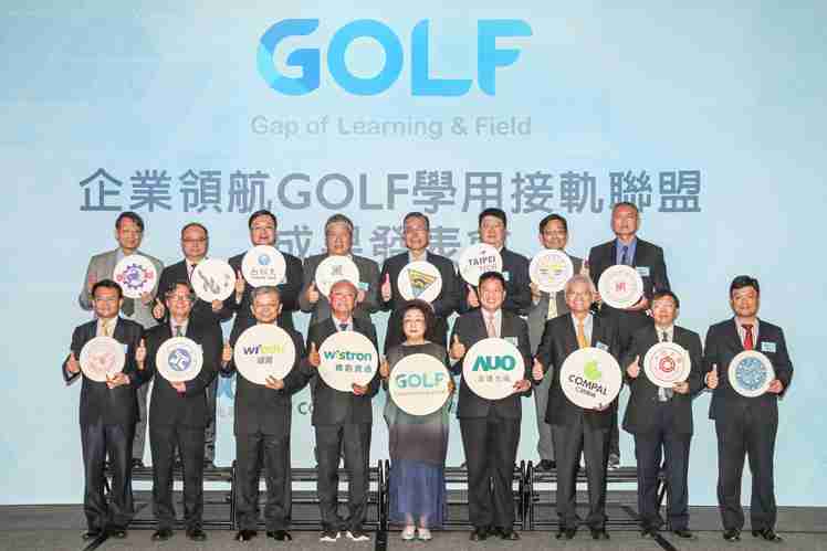 GOLF学用接轨联盟集结企业和学校的力量,,打造「学用合一、、、产学接轨」的创新合作平台 (前排左起:淡江大学副校长何启东、、、、元智大学校长林启瑞、、纬育执行长许延岳、、纬创总经理暨执行长黄柏漙、、、教育部政务次长范巽绿、、EBpay董事长暨执行长彭双浪、、仁宝总经理暨执行长翁宗斌、、大同大学校长何明果、、、圣约翰科大校长艾和昌;后排左起:明新科大校长林启瑞、、、龙华科大校长葛自祥、、台湾科大校长廖庆荣、、、、中兴大学副校长郑政峯、、、、中央大学校长周景扬、、台北科大副校长任贻均、、、、中华科大副校长石大明、、明志科大校长刘祖华)